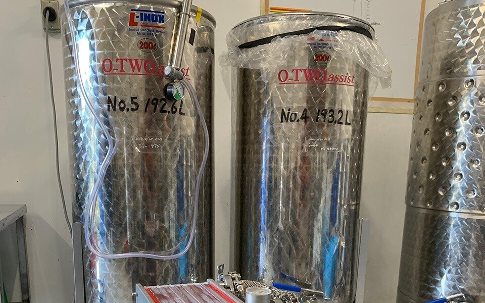 このブドウの果皮・果肉・種子などを果汁と共に漬け込む工程を、“醸し(かもし)”と言います。醸し時間によって色合いや味わいに違いが生じるので、時間はワイン・生産者によって異なります。